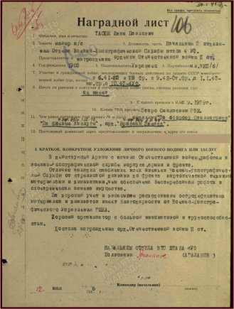Прадед был кадровым военным, служил в Красной Армии с 1930 года. Войну встретил в звании батальонного комиссара. Участвовал в обороне Москвы и Сталинграда. В составе 46 армии прошел путь через Кавказские горы, Краснодар, Ростов-на-Дону, Луганск, Харьков, Днепропетровск, Николаев, Одессу. В составе 2го Украинского Фронта прошел Румынию, Сербию (Югославию), Венгрию и Австрию, где и встретил новость о Победе в ВОВ.